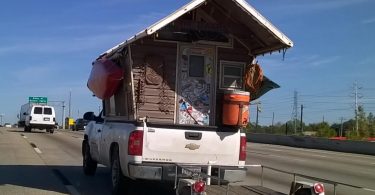 Tiny house on a pick up (Houston highway) Une mini maison transportable (sur l’autoroute)
